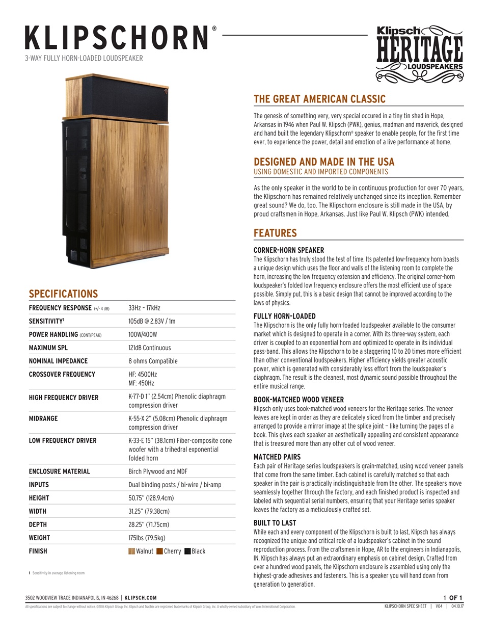音頻技術的先驅、杰士公司的創始人PAUL W.KLIPSCH 先生于1946年推出了此款號角落地式音箱。從而使大眾第一次在自己家中就能聆聽到如此動感、細膩、富有情感的現場聲音。此款音箱被人們稱之為角落號角音箱,配有號角高音以及中音壓縮驅動單元,還配有一個有專利技術的15英寸折疊號角低音喇叭。