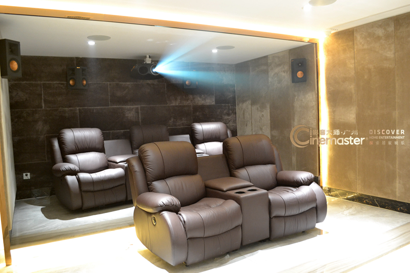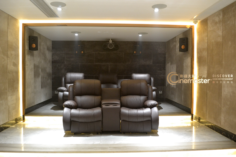 用戶要求超高清大屏,最新影音系統,因此選用了愛普生4K超高清激光投影機,真色彩,長壽命;搭配美國杰士7.2.4全景聲系統原裝進口單元。影音室整個裝修風格接近整宅裝修,用戶不喜歡太華麗的裝飾,但整個系統施工完成,比電影院更震撼的音效,更清晰的畫面,效果已經盡顯奢華!