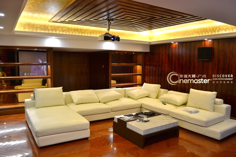 完工實拍圖,沙發采用U型沙發,充分照顧到三五朋友一起觀影K歌