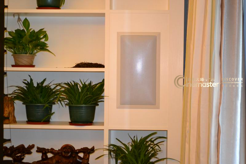 杰士5800W嵌墻的主箱和中置,既保證影音的音效,又滿足了客廳整體的美觀設計,柜子里面的綠植也是對生活慢慢的熱愛。