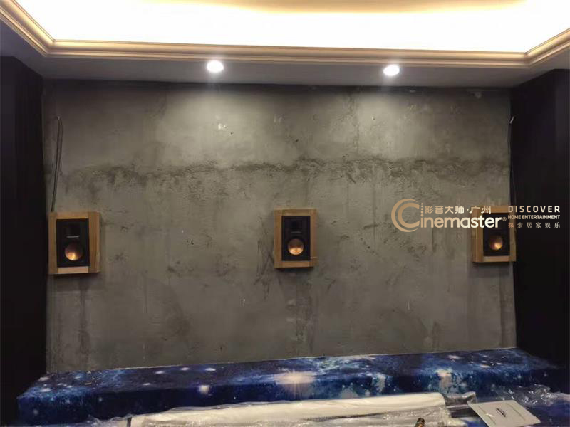 音箱系統的前置音箱隱藏在幕布后方,墻面沒有做太多的裝飾,安裝音箱的箱體只需要10cm厚度