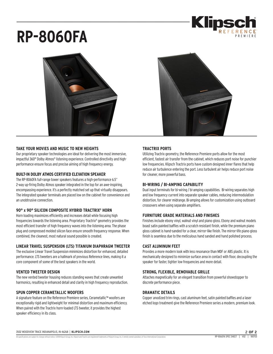 Klipsch專有的Tractrix®喇叭加載技術可確保RP-8060FA的高頻能量直接對準聽眾,并減少不必要的人工混響-這意味著您可以體驗到最清晰,細膩,栩栩如生的聲音。