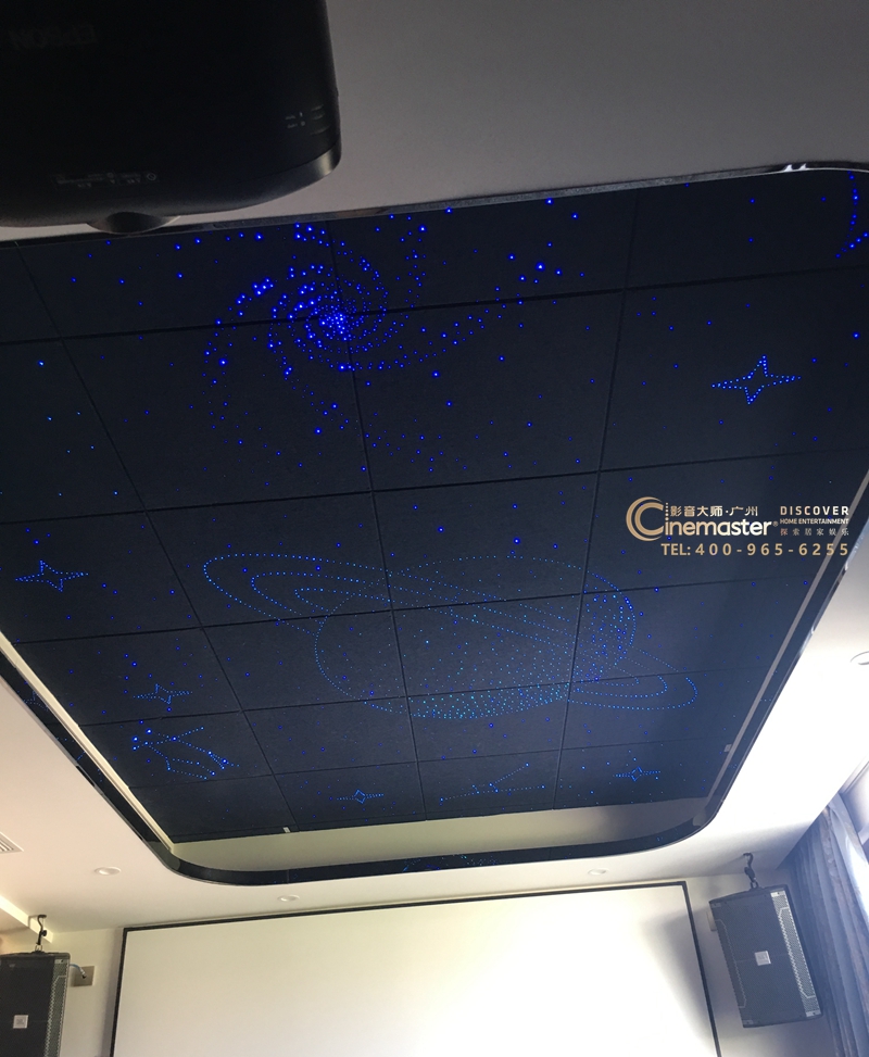 天花定制星空頂造型,星空圖案可以根據自己喜歡的圖案定制,星空使用的材料也可以起到一定的吸音作用,星空會自動變幻顏色