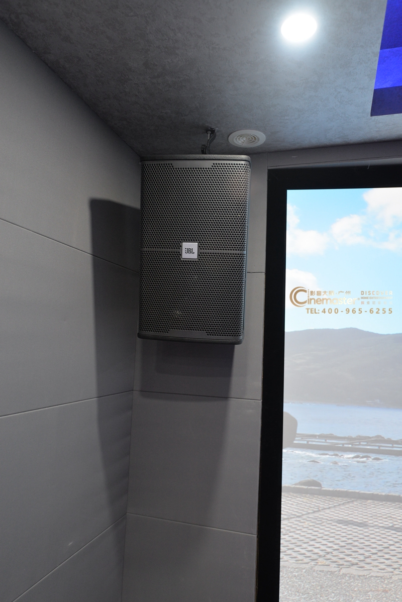 可以看到側(cè)墻上的環(huán)繞音箱,杰士THX-8000-S 未蓋上白色外置時(shí)狀態(tài) ,此環(huán)繞高音單元采用了杰士特有的偶極高音單元,即雙方向高音,可以使聲場(chǎng)的范圍更寬廣,音箱厚度僅100mm,內(nèi)嵌到墻體非常省空間。影音房側(cè)墻采用了階梯式設(shè)計(jì),暗藏藍(lán)色燈帶,在觀影時(shí)這樣的氛圍燈會(huì)增加觀影的臨場(chǎng)感。