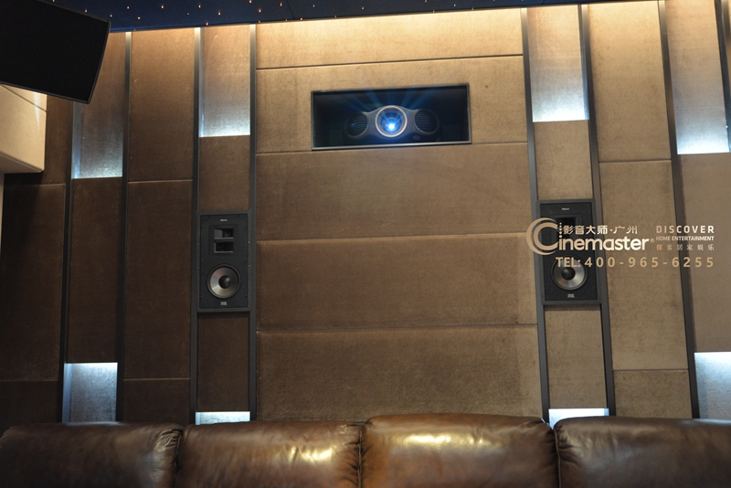 愛(ài)普生LS10500 4K激光投影機(jī)嵌墻安裝,由于房間長(zhǎng)度較長(zhǎng),后墻則留出約650mm深度空間,把投影機(jī)巧妙的設(shè)計(jì)內(nèi)嵌到墻體,非常時(shí)尚美觀。而且愛(ài)普生特有的前排風(fēng)前進(jìn)風(fēng)技術(shù),使得投影機(jī)不需要再像傳統(tǒng)的投影機(jī),從側(cè)面進(jìn)風(fēng)側(cè)面排風(fēng),需要留足夠的空間給投影機(jī)散熱,于是我們就可以把投影機(jī)很好的隱藏起來(lái),只留出投影鏡頭部分。