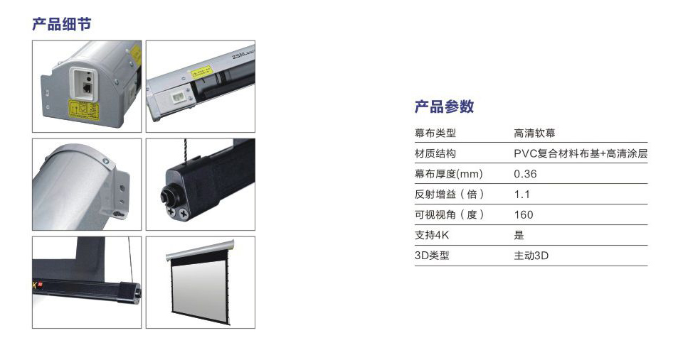 CROWN高清軟幕使用特種PVC復合材料制造而成,表面為光滑的乙烯基。幕布投影區表面具有細微的光學花紋,能有效消除耀光和光波紋的同時又保持幕布的表面光滑細膩。使圖象能充分還原色彩的飽和度,增加對比度。視角廣闊,無論欣賞者坐在哪個角度,都能看到同樣清晰、艷麗的畫面。