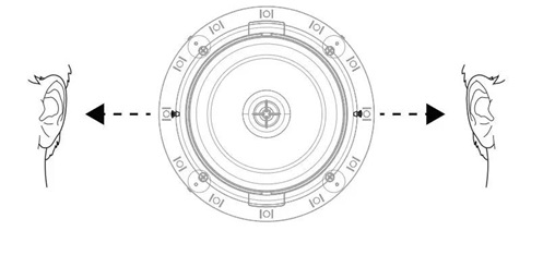 箭頭指向耳朵,其實是關于安裝位置的選擇問題,當你在安裝家庭影院的時候,喇叭要選在2個人之間的位置,這樣聽音樂的時候兩邊都能夠覆蓋到。
