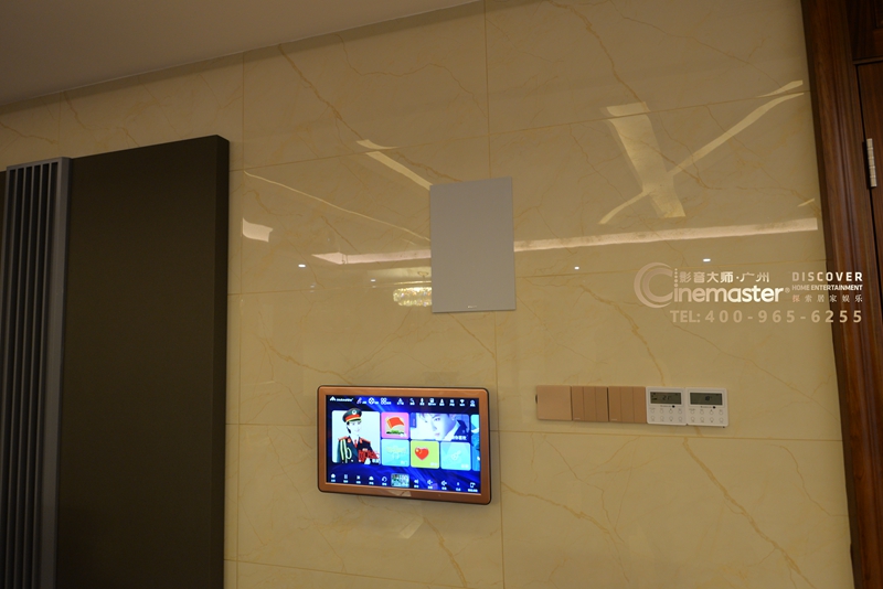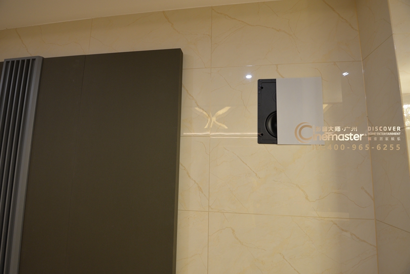 后墻柜子預(yù)留位置嵌入杰士CS-16W作為后環(huán)繞音箱