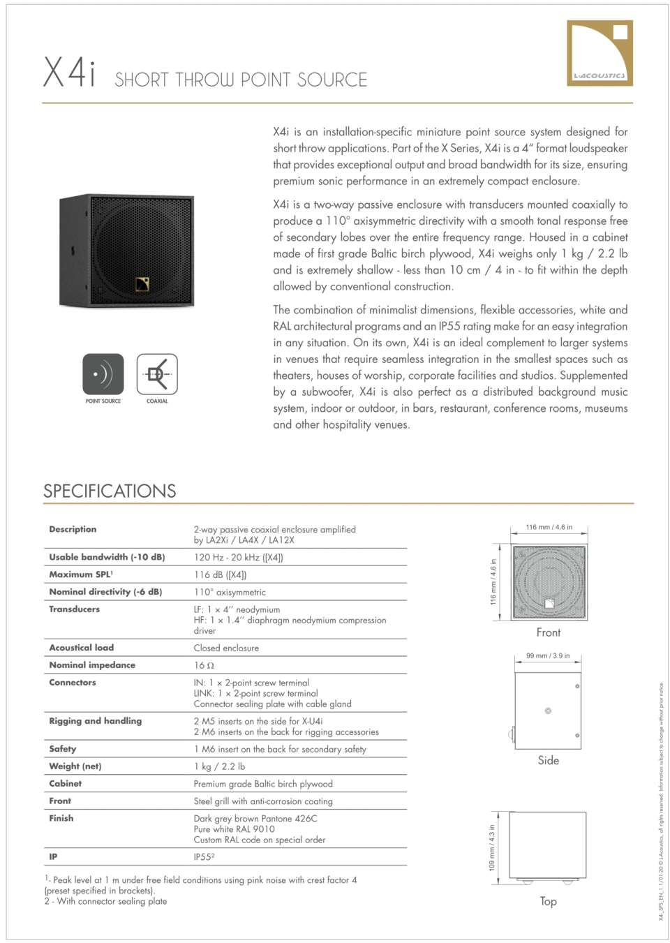 最大聲壓級:116dB