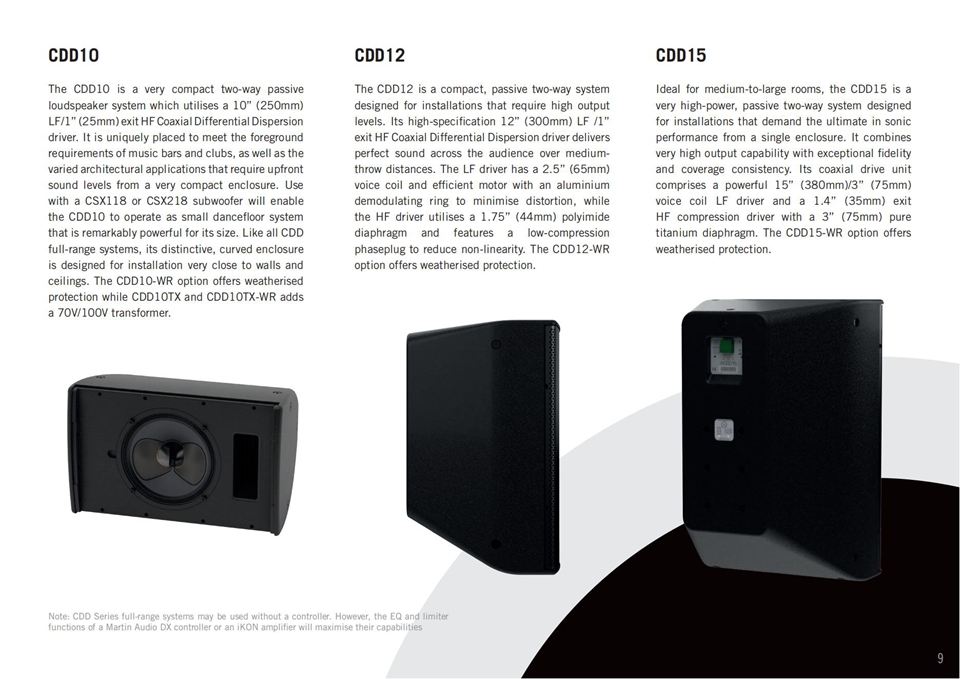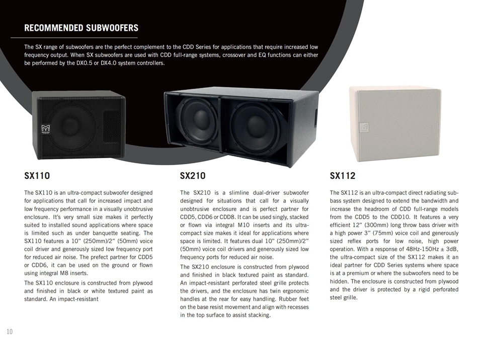 它也可以作為補(bǔ)聲系統(tǒng)與較大尺寸的CDD系列型號(hào)一起用,并且搭配SX低頻揚(yáng)聲器,可以再現(xiàn)令人驚訝的高水平音樂(lè)節(jié)目。
