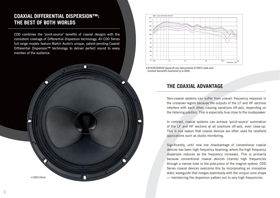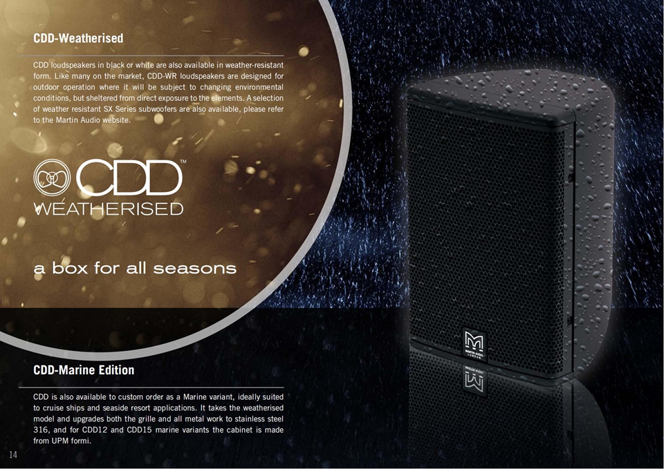 無論是一個酒吧、一個音視頻固定安裝工程、教堂或極富聲望的夜總會,CDD系列都可以滿足它們的需求。CDD被證實是一種一站式解決方案;六種雙向全頻的 同軸系統——從微型的CDD5一直到強力的CDD15,搭配高性能超低音揚聲器——涵蓋了基本上所有的安裝應用環境。