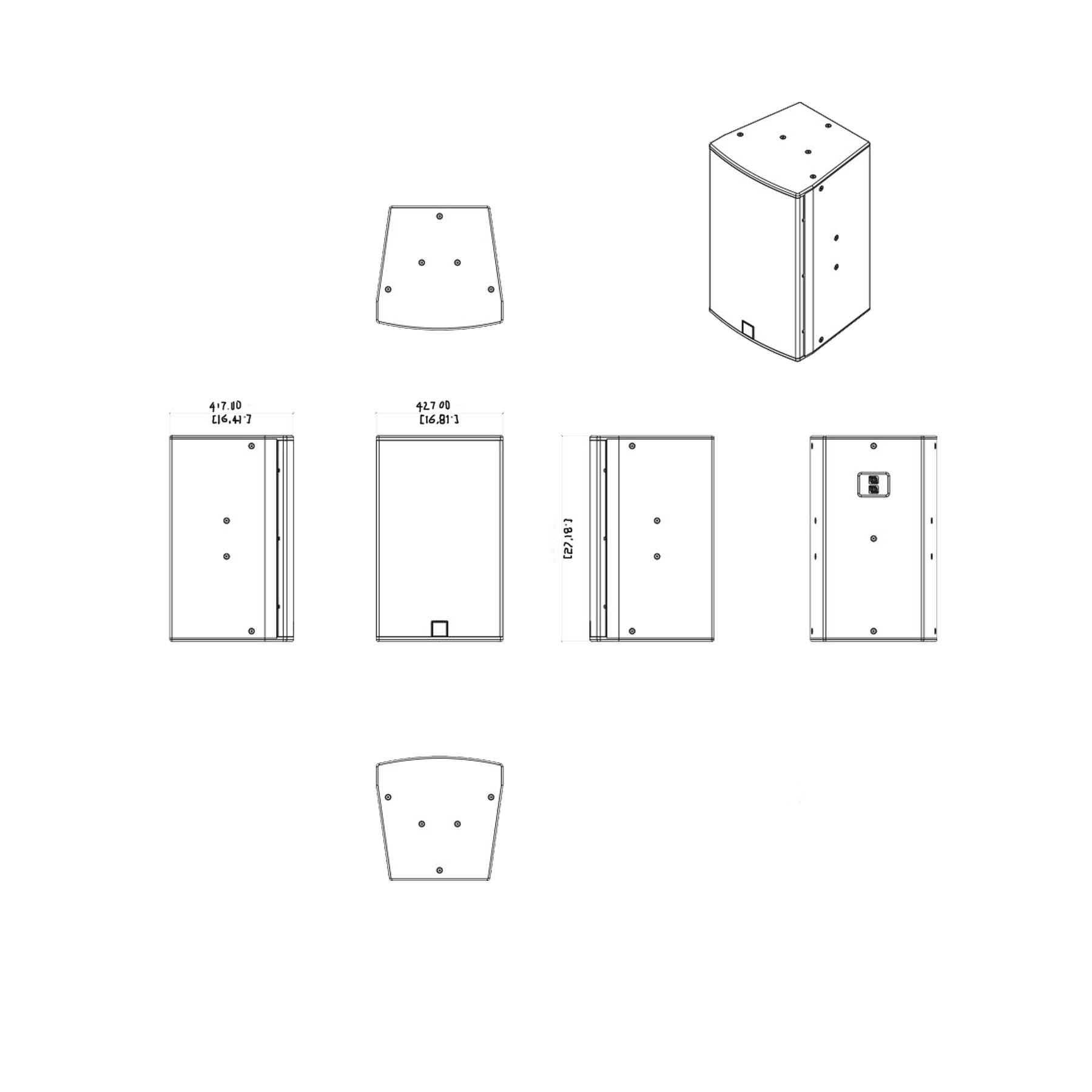 箱體由15mm工程木纖維板制成,并涂有黑色紋理漆。帶有鋼襯的防護(hù)性鋼格柵可保護(hù)驅(qū)動(dòng)器,并提供M8嵌件用于吊環(huán)螺栓的懸掛和安裝