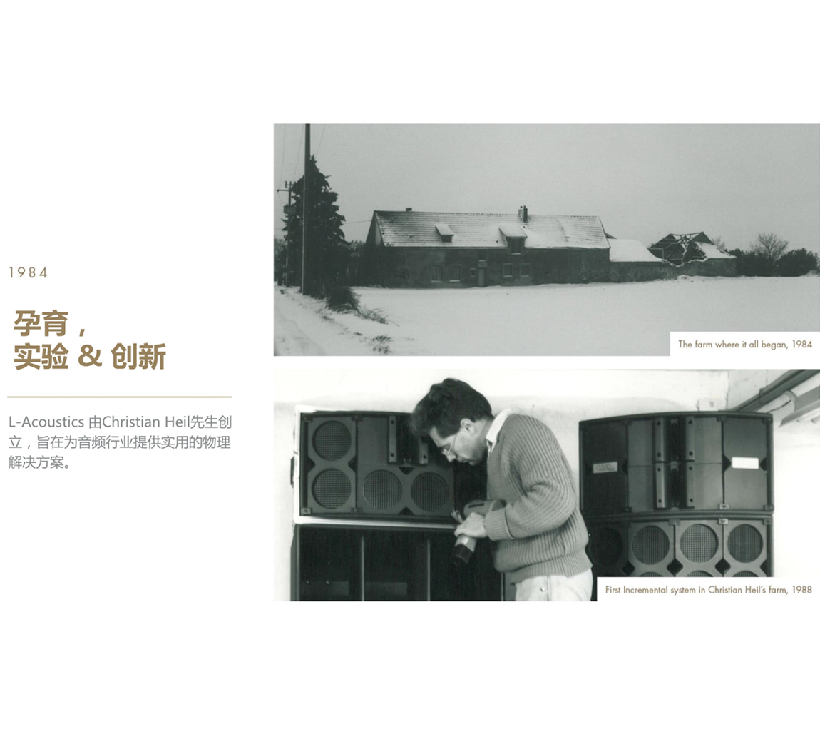 這一切都始于現場音樂的聲音。1977年,身為粒子物理學家的Christian Heil先生參加了Pink Floyd的音樂會。他立刻就被迷住了,想要更深入地沉浸在聲音傳播的迷人世界中。這場音樂會點燃了最初的火焰,同時也點燃了他畢生的熱情和使命感,以至于在15年后徹底打破和改變了整個專業擴聲領域。但是我們有點超前了……L-Acoustics 成立于1984年,以服務現場演出行業為宗旨,為專業音響從業人員提供實用的解決方案。粒子物理學家Christian Heil 博士并非音頻行業人士,但他卻以一種全新的思維方式并用其更加明亮的眼睛和更敏銳的耳朵,探索并獲得了為觀眾提供高質量聲音的科學和藝術。