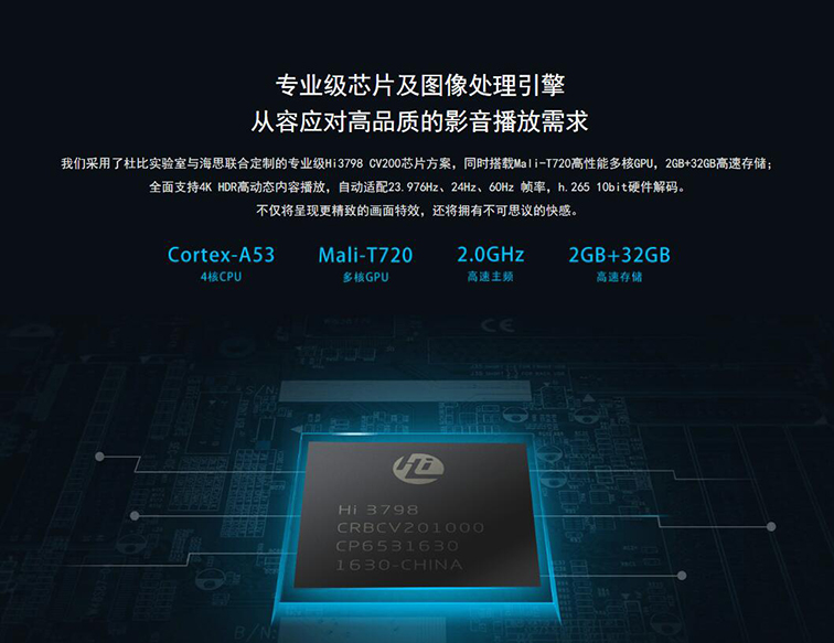 CPU:高性能ARM Cortex-A53 四核 64bit 2.0GHz