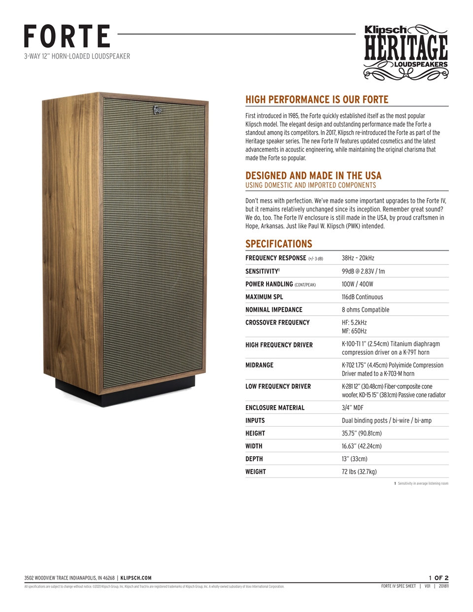 Forte IV 外殼由阿肯色州霍普的自豪工匠在美國手工組裝,正如 Paul W. Klipsch 所期望的那樣。