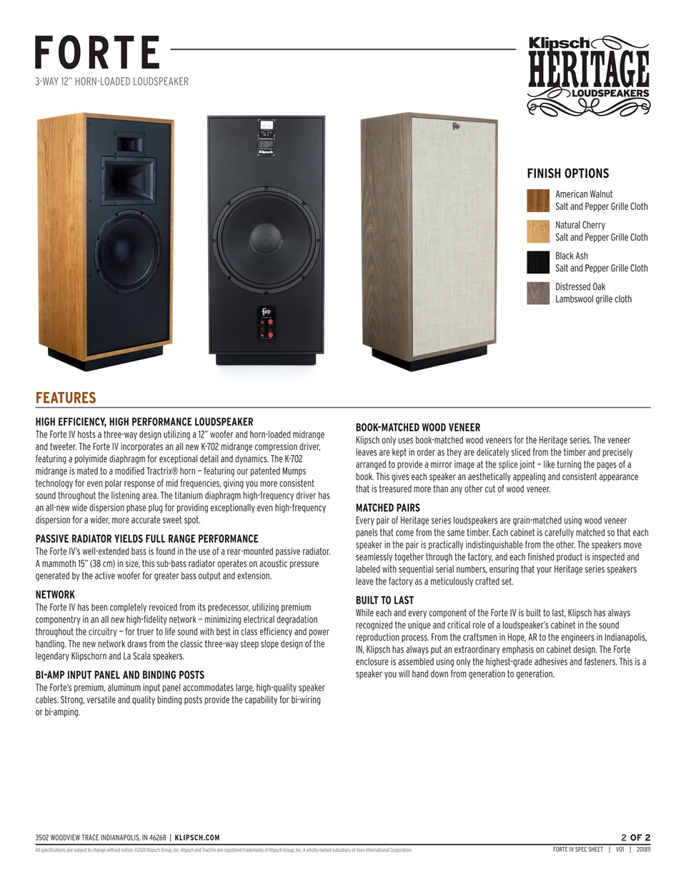Klipsch 僅在 Heritage 系列中使用與書本相配的木飾面。單板葉子保持有序并排列成鏡像,就像翻書頁一樣。