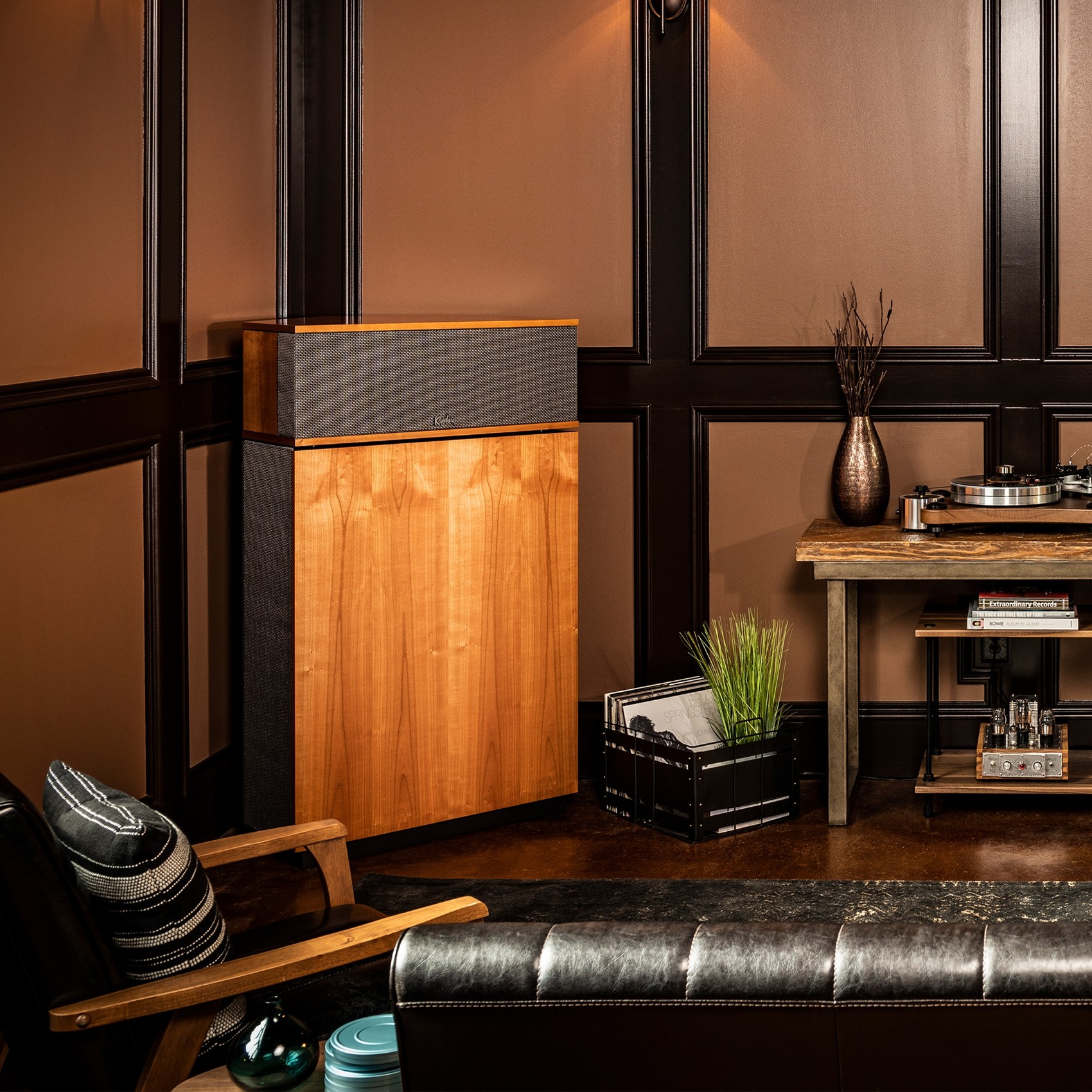 Klipschorn 的低頻號角經過重新設計,現已完全封閉。這消除了將揚聲器緊貼地放置在角落的需要。