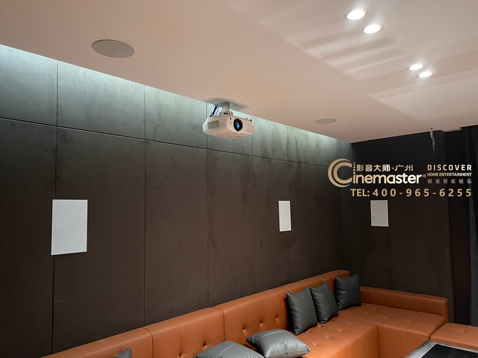 杰士 PRO-16RW音箱作為環(huán)繞嵌入到墻內(nèi),白色的外罩為黑色的墻面加以點(diǎn)綴