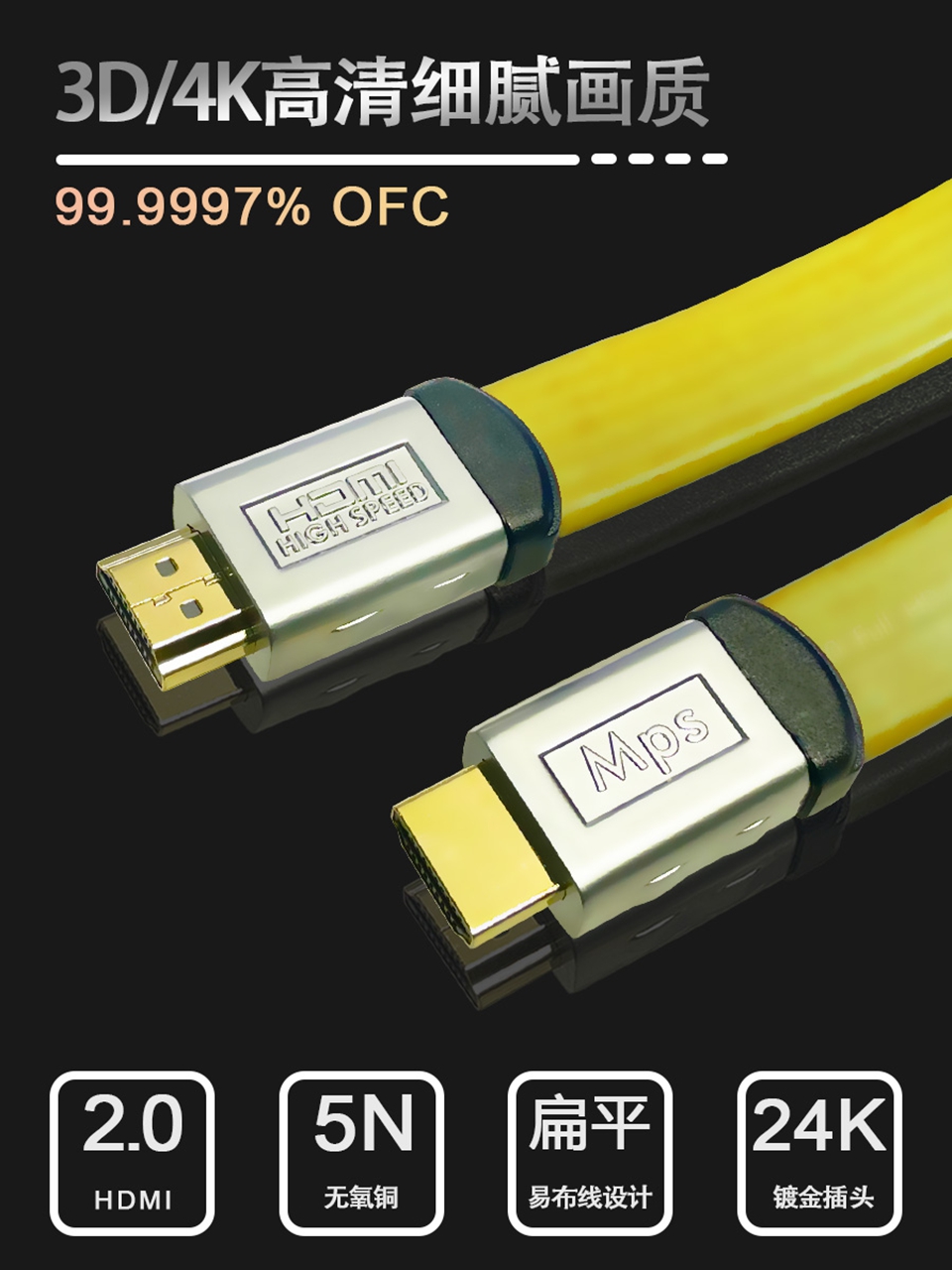 采用24AWG99.9997%單蕊ofc無氧銅線制成
