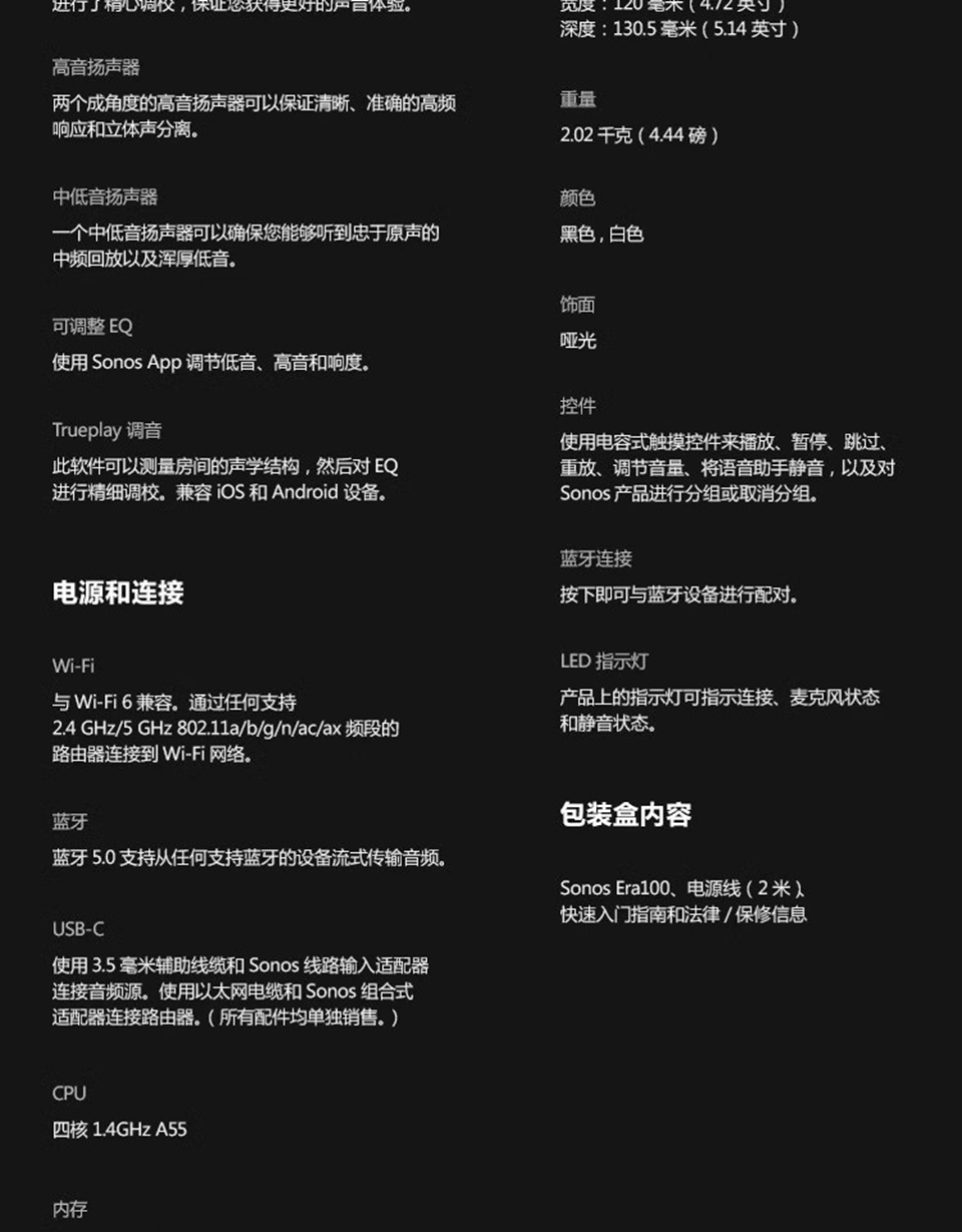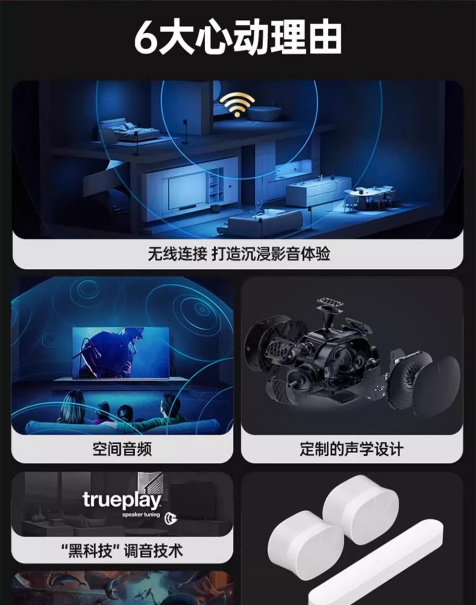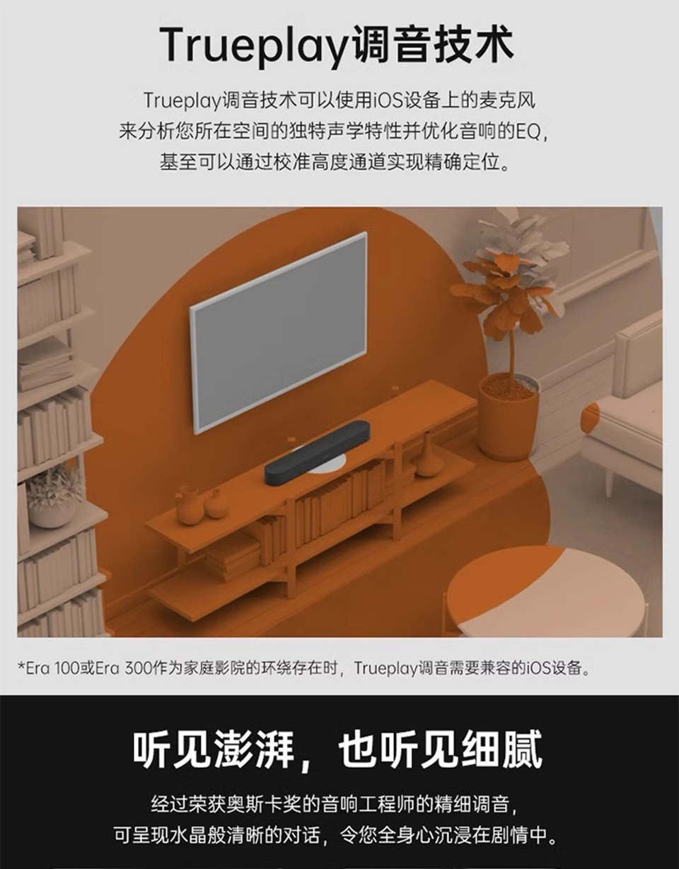 音效:3.0聲道,Trueplay調(diào)音(支持IOS和安卓),EQ調(diào)節(jié),杜比全景聲,Apple Music空間音頻,對(duì)白增強(qiáng),夜間模式