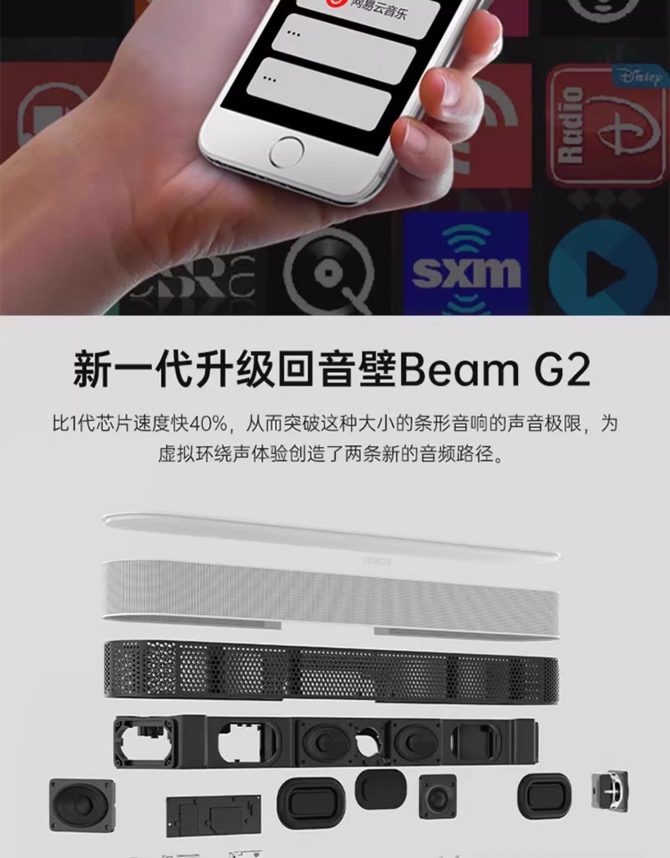 音源:Airplay2,內(nèi)置QQ音樂(lè),網(wǎng)易音樂(lè)等100+流媒體平臺(tái),eArc